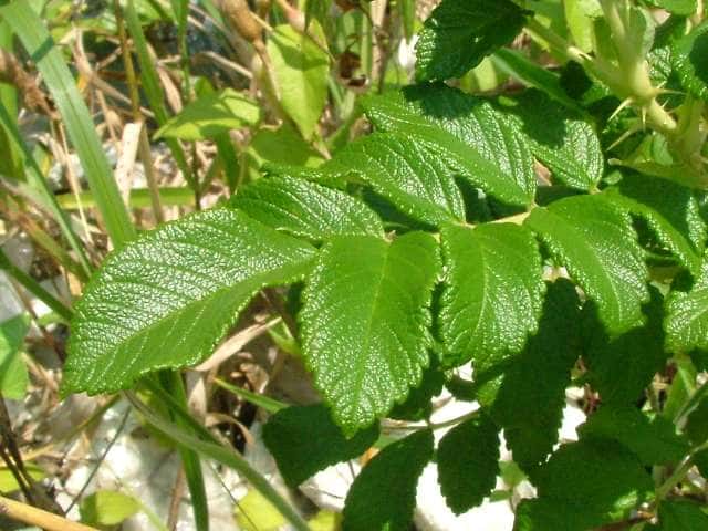 | ▼2016年10月18日 植栽 玉湯 | ▼葉は葉柄を含んで長さ約8.5cm。 | |
