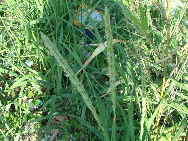 | 多年草 北海道〜九州の海浜の砂丘に生育し、著しく群生する。根茎は太く、砂中深く埋もれて横に長くはい、また、新しい匍匐根茎をのばしてその先に越冬芽を上向きにつける。茎は高さ80〜150cm、直立しやや叢生する。葉は長さ20〜50cm、幅10〜18mm、広線形、緑白色および厚い。花序は直立し単一の穂状、長さ15〜25cm、径15〜20mm、淡黄緑色、短い軟毛がある。小穂は通常1節に2個つき、3〜5小花からなり、長さ10〜25mm。護穎はほとんど無芒。果実は線状倒披針形、頭部に2個の小突起をつけ、毛を被り、淡褐色を帯び長さ7〜8mm。別名ハマニンニク。花期は6〜7月。(日本イネ科植物図譜) 学名は、Leymus mollis イネ科テンキグサ属 |