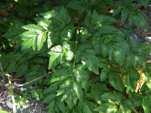 | ▼3小葉だが、小葉が中裂する。 | ▼2回3出複葉になる。 | ▼大きな2回3出羽状複葉になる。 |