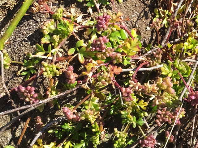 | 越年草 北海道〜九州の海岸の砂地に生える。高さは10〜50cm。根は太い。茎は下部から枝分かれして、はうかときには直立する。葉は長さ3〜10cmの単羽状腹葉で、小葉は羽状に切れ込む。枝先に小型でまばらな複散形花序をだし、白色の小さな花をつける。総苞片と小総苞片は細くて短い。果実は長さ約3mmの扁平な球形で、隆起線が竜骨状にはりだしてよく目立つ。花期は8〜10月。(野に咲く花) 学名は、Cnidium japonicum セリ科ハマゼリ属 |