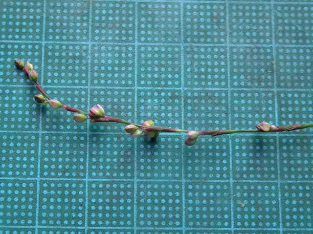 | ▼花序は長さ6cm、まばらに花がつく。 | ▼花被に包まれた果実。 | ▼果実は3稜形で、長さ約2.5mm。 |