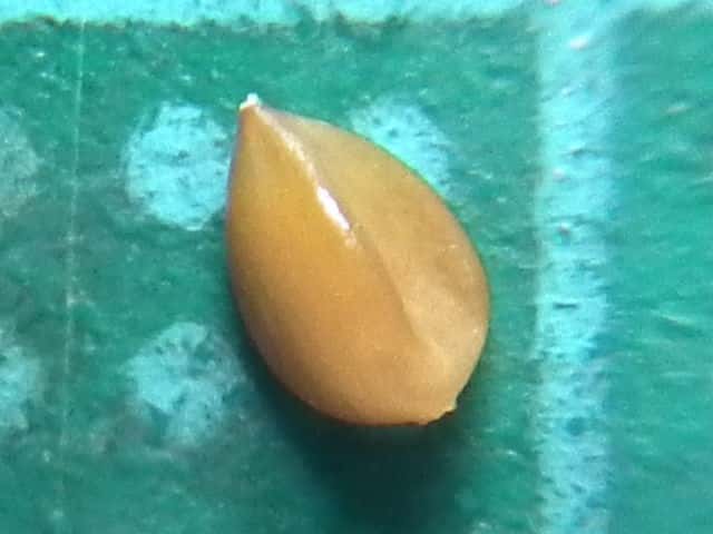 | ▼花被に包まれた果実は長さ約3mm。 | ▼果実は3稜形、長さ約2.5mm。 | |