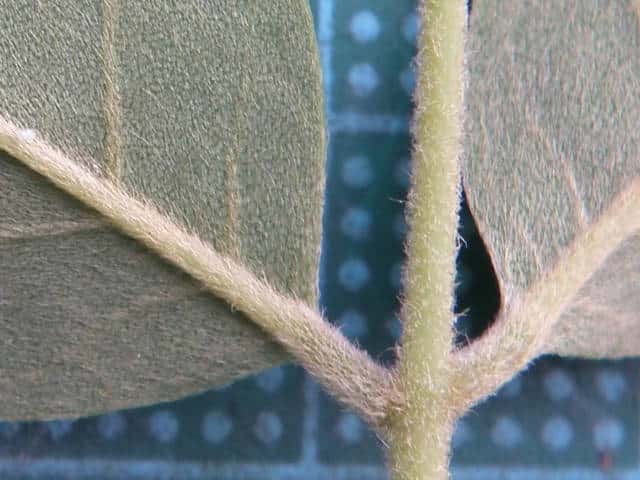 | ▼葉の裏面は伏毛が密生する。 | ||