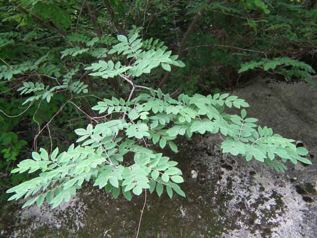 | ▼2016年5月28日 宍道 | ▼葉は長さ約20cm、小葉が6対ある。 | ▼小葉は長さ約5cm。 |