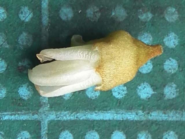 | ▼下側の萼片は浅い三角形。 | ▼萼は長さ約4mm、4裂する。 | |