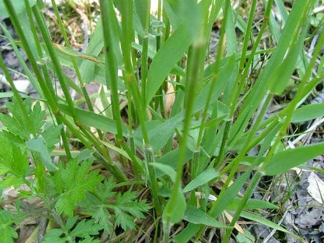| ▼葉鞘は無毛、葉舌は鋭形。 | ▼葉には長い毛がある。 | |