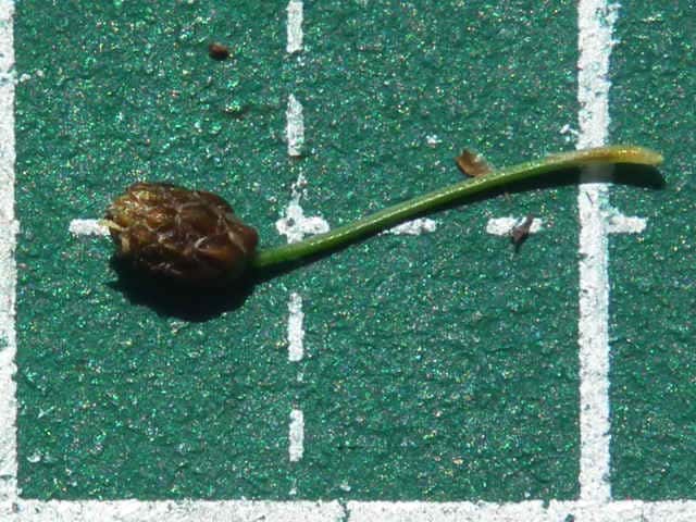 | ▼柱頭は3岐する。 | ▼果実は長さ約0.6mm、柱基が広がる。 | ▼表面に横紋があり、小突起がある。 |