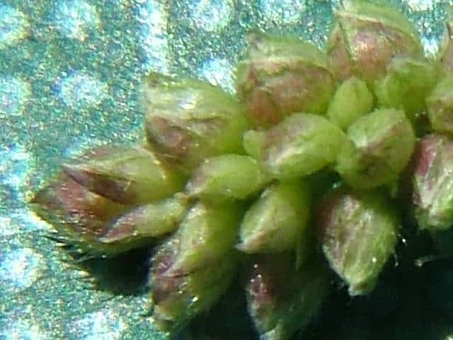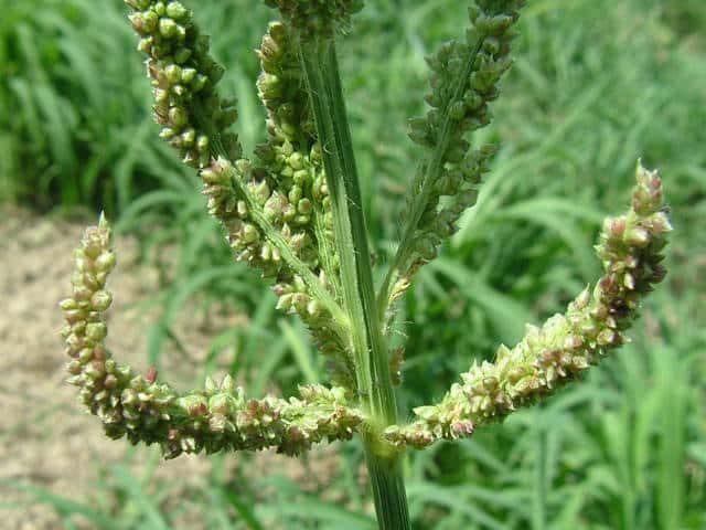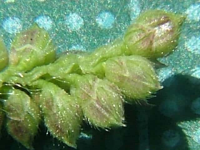| 1年草 インド原産といわれ。縄文文化期に日本に渡来し、雑穀として栽培され、また鳥の餌としても栽培される。茎は高さ60〜120cm、直立・そう生し、平滑・無毛。葉は長さ30〜50cm、幅10〜15mm、両面とも無毛。裏面は平滑、表面と縁はざらつく。葉舌はなく、葉鞘は平滑・無毛。花序は円錐形、長さ10〜20cm、花軸の節から長さ4〜10cmほどの枝を交互に出し、イヌビエよりも小穂を密接につけ、小穂は紫褐色を帯びる。小穂は長さ3〜3.2mm。第1包穎は広三角形、長さ1.2mm、3脈。第2苞穎は広倒卵形、5脈、側脈に剛毛をつける。第3穎は広倒卵形、7脈、内穎は残存する。護穎と内穎は革質。期は7〜8月。(日本イネ科植物図譜) 学名は、Echinochloa esculenta イネ科ヒエ属 |