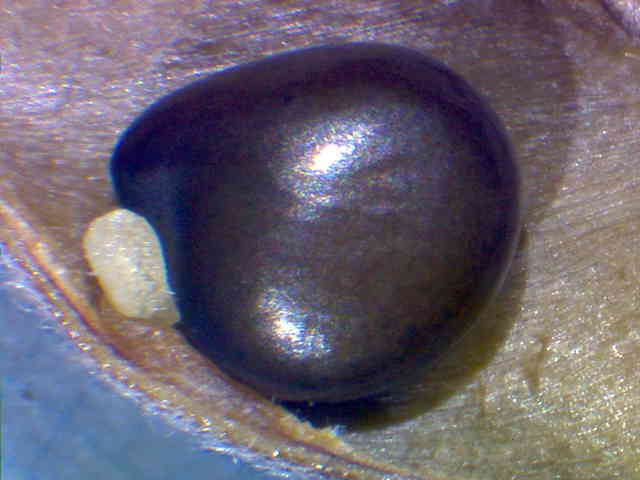 | ▼種子が1個入っていた果実。 | ▼短い種柄で果皮と繋がっている。 | ▼種子は長さ2〜3.5mm。 |