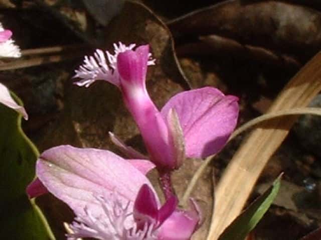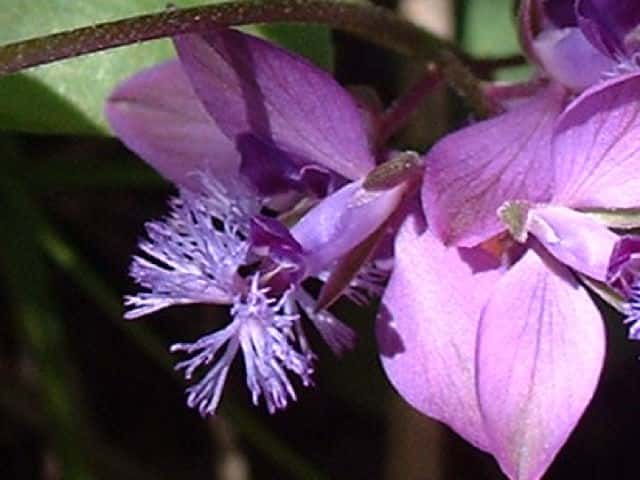 | ▼花の裏面、小さな萼片が2個ある。 | ▼下側の花弁の先が房状になる。 | |
