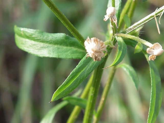 | ▼筒状花は長さ約2.7mm。 | ▼筒状花の冠毛は長さ約2mm。 | ▼下部の葉は鋸歯がある。 |
