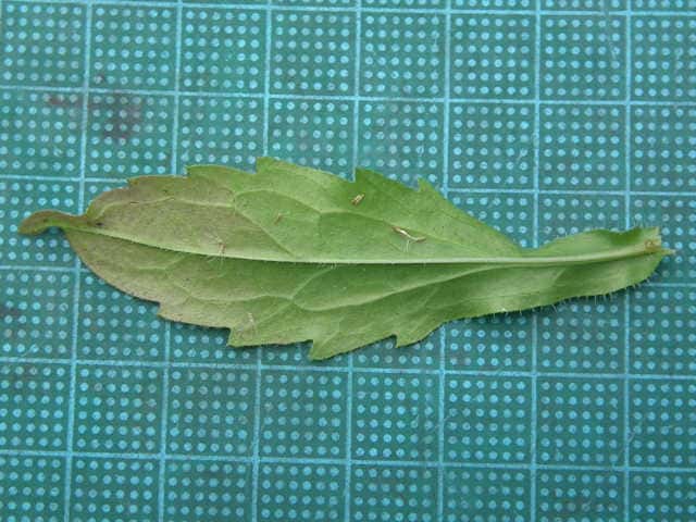 | ▼上部の葉は細く鋸歯がない。 | ▼下部の葉は鋸歯がある。 | |