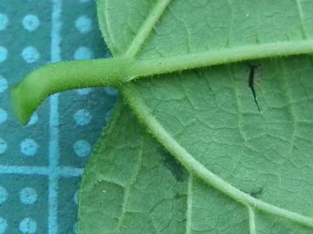 | ▼2008年8月2日 八雲 | ▼葉柄には短毛。表面は毛が散生する。 | |