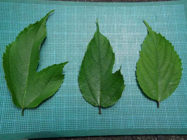 | ▼裏面には毛が密生する。 | ▼葉形の比較。 | |