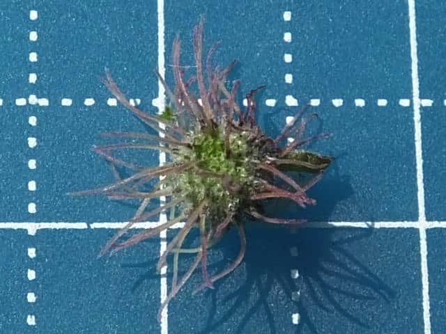 | ▼雄花は直径約1cm。 | ▼雌花は花柱を含めて直径約1cm。 | ▼たくさんの花柱が伸びている。 |