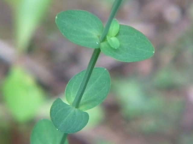 | ▼葉は卵形で、長さ約1cm。 | ▼葉には黒点はなく、明点がある。 | |