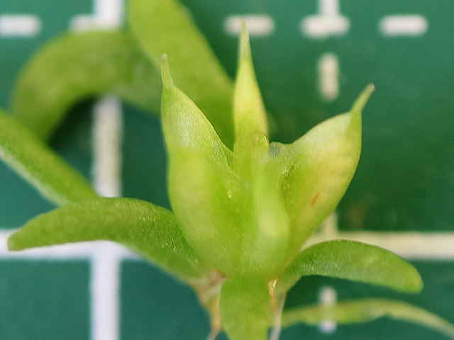 | ▼若い果実。 | ▼果実は長さ約5mm。 | ▼若い種子は長さ約0.6mm。 |