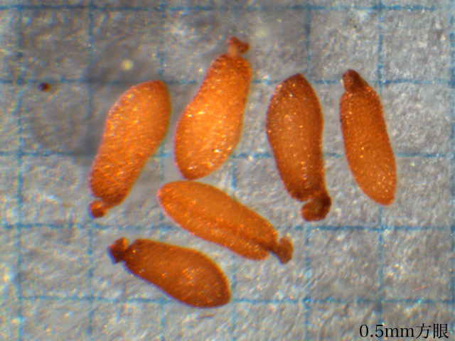 | ▼果実は直径約5mm。 | ▼果実は長さ約5mm。 | ▼種子は長さ0.8〜0.9mm。 |