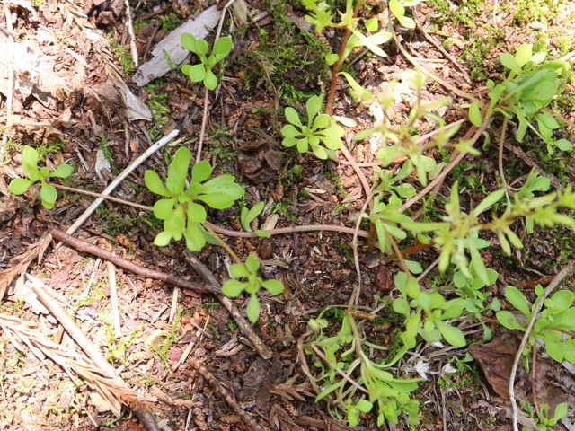 | ▼2013年7月8日 島根 | ▼花のない株はロゼット状で、へら形の葉。 | ▼走出枝の先のロゼットの葉はさじ形。 |