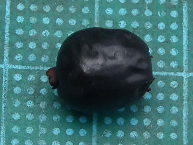 | ▼熟すと黒くなる。 | ▼果実の横断面。 | ▼核(種子)は長さ約8mm、裏に凹みがある。 |