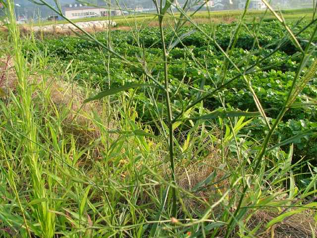 | ▼2006年10月22日 宍道 葉の広さ、冠毛の長さからヒロハとするが、枝の分岐状態はホウキギクを思わせる。 | ||