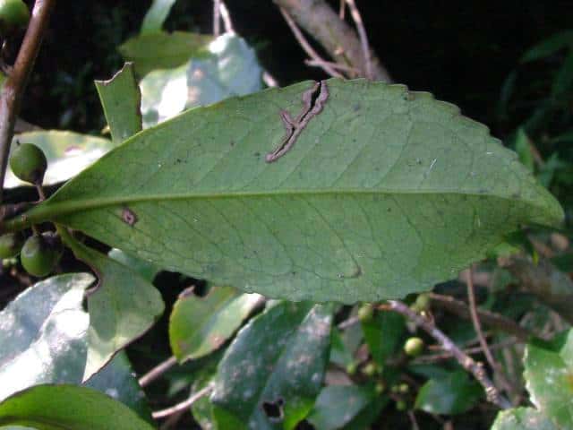 | ▼2017年9月14日 東出雲 | ▼葉脈が凹む。 | ▼葉先が鈍頭でわずかに凹む。 |