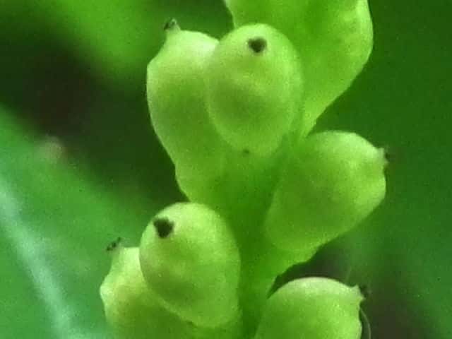 | ▼2013年6月3日 若い果実 枕木山(ストロボ使用) | ▼果実は直径約3mm。 | |
