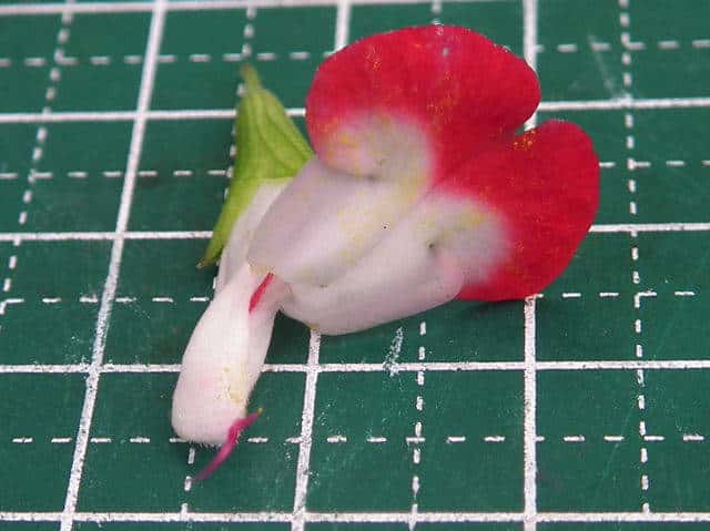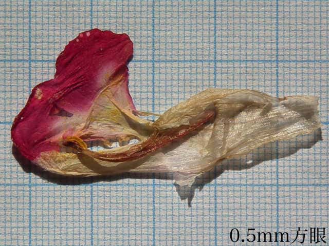 | ▼花冠は長さ約2.5cm。 | ▼花冠の縦断面。 | |