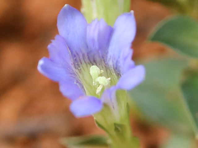 | 越年草 北海道〜九州の山野の日当りのよいところに生える。茎は高さ6〜9cmになり、上半部に葉が密に対生する。葉は長さ0.5〜1.2cmの広卵形でやや厚く、裏面はしばしば紫色を帯びる。茎の先に青紫色の花が数個集まってつく。花冠は長さ2〜2.5cmの鐘形。萼は緑色。花期は3〜5月。(野に咲く花) 学名は、Gentiana zollingeri リンドウ科リンドウ属 |
