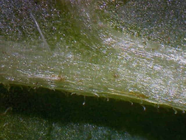 | ▼葉の裏面。 | ▼裏面脈上に短毛、まばらに長毛がある。 | |