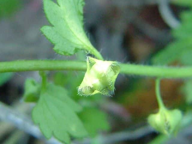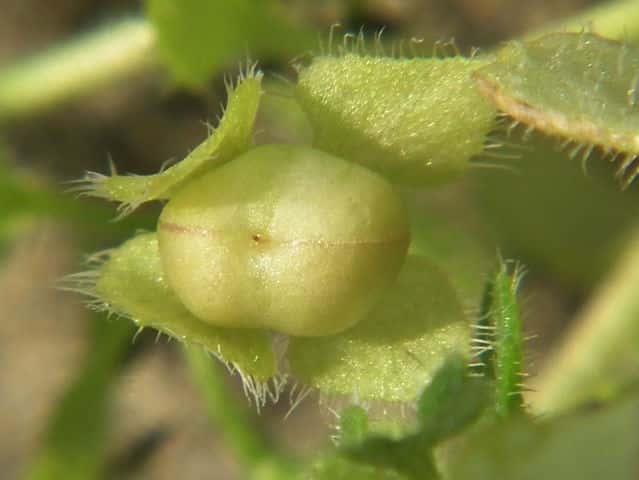 | ▼花は直径約4mm。 | ▼萼に包まれた若い果実。 | ▼萼を取り除いた。若い果実は直径約4mm。 |