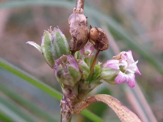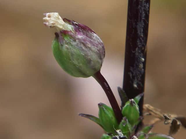 | ▼果実は熟すと先が6裂し、種子が出る。 | ▼種子が見えている。 | ▼果実は長さ約1cm。 |