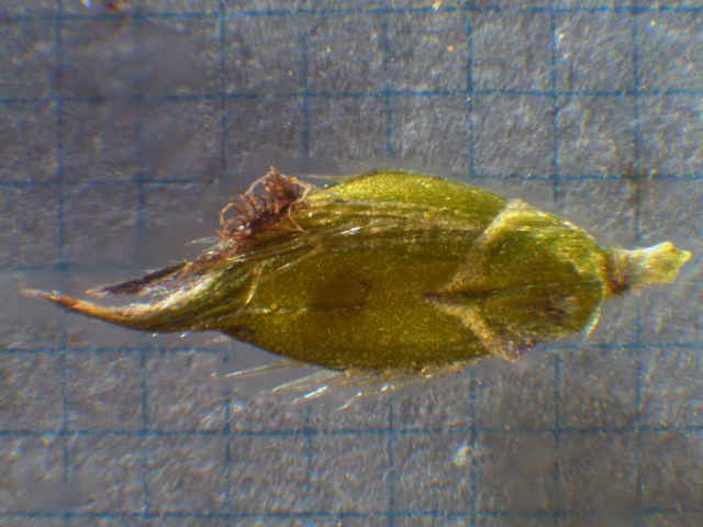 | ▼小穂は長さ約3.5mm。 | ▼第1苞穎は短く、長さ約1mm。 | ▼第2小花の護穎は光沢がある。 |