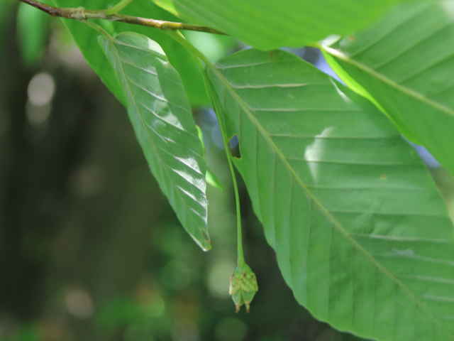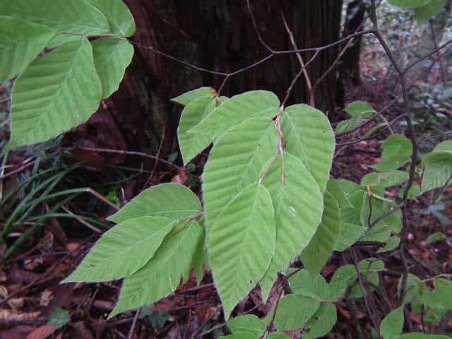 よく似たブナは葉の葉脈が7〜11対、果実は上を向いてつき、殻斗が大きい。