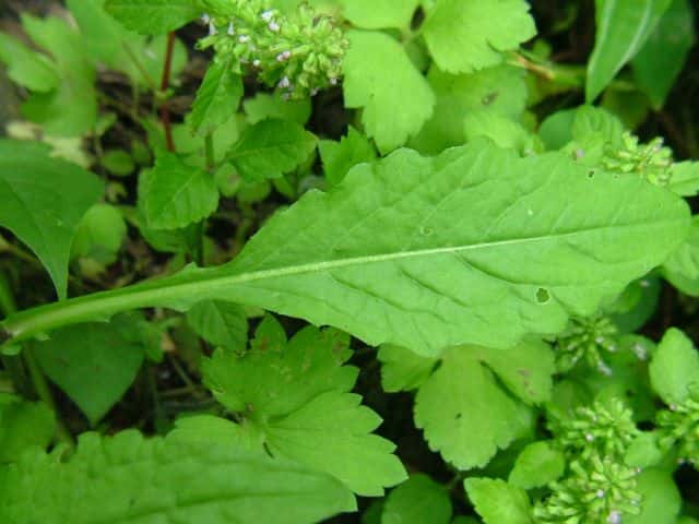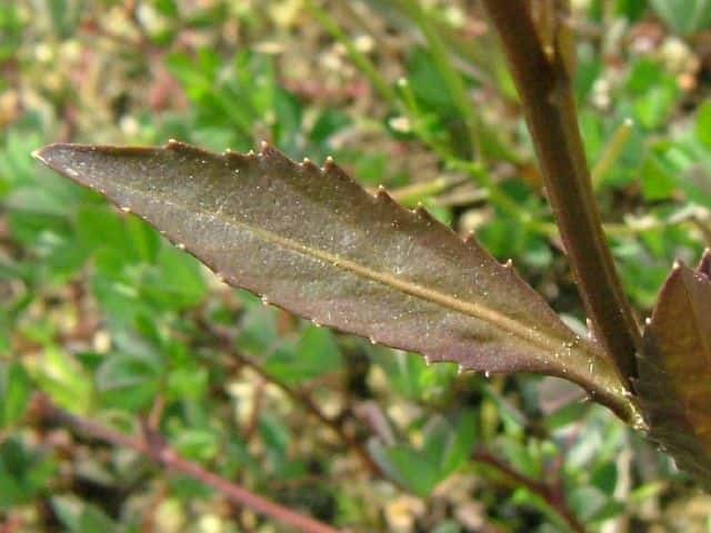 | ▼葉には鋸歯がある。 | ▼茎は無毛。 | |