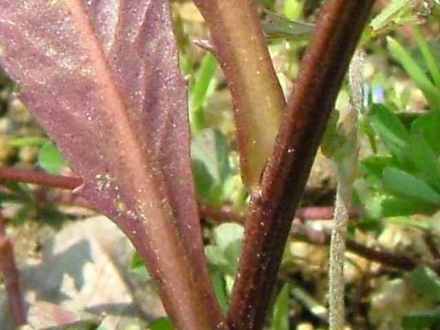 | ▼葉柄の基部はわずかに茎を抱く。 | ||