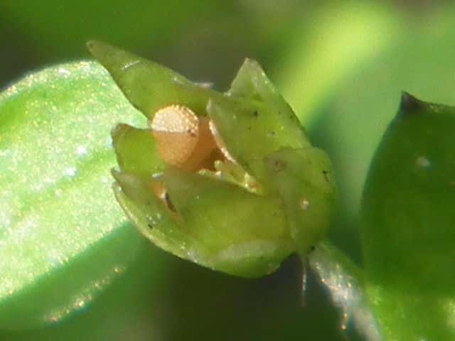 | ▼種子は中央胎座からの種柄で繋がっている。 | ▼裂開した果実、長さ約4.5mm。 | |
