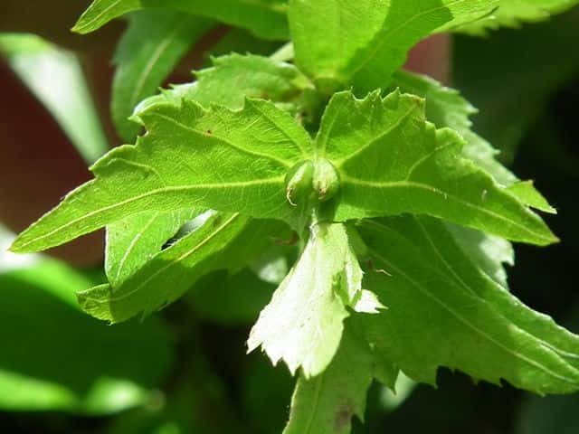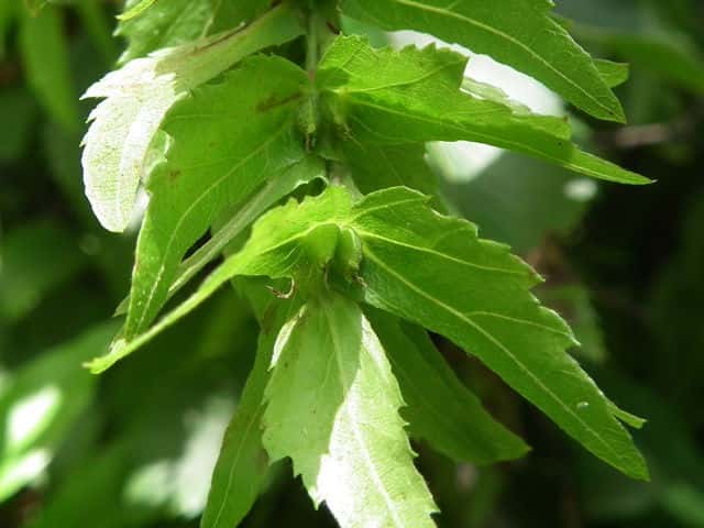 | ▼2006年6月3日 東忌部 | ▼葉柄は短く、葉脈とともに毛が多い。 | |
