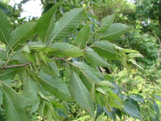 | 落葉高木 岩手県・新潟県以南〜九州の山地や丘陵の雑木林に多いが、人里近くでも見られる。高さ15m、直径30cmほどになる。本年枝は単緑褐色で、ふつう白毛が密生する。2年目以降の枝は淡赤褐色で、円い小さな皮目がやや多い。樹皮はなめらかで、白っぽい縦縞模様が目立つものが多い老木には浅い割れ目が入る。葉は互生。葉身は長さ4〜8cm、幅2〜4cmの卵形または卵状長楕円形。先端は鋭く尖り、基部は円形〜広いくさび形。ふちには鋭く細かい重鋸歯がある。側脈は12〜15対あり、裏面に突出する。葉の表面は光沢はなく、少し伏毛がある。裏面は脈上と脈腋に毛がある。葉柄は長さ8〜12mm、淡褐色の毛が密生する。雌雄同株。葉の展開と同時に開花する。雄花序は黄褐色で長さ5〜8cm、前年枝から垂れ下がる。雄花は苞の下に1個ずつつく。苞は卵状円形で、ふちには毛がある。雄花には雄しべが数個つき、葯の先にひげ状の長い毛が生えている。雌花序は本年枝の先端や短枝のわきから垂れ下がる。苞は広卵形で、雌花が2個ずつつく。花柱は紅色で先端は2裂する。果実は堅果。10月頃熟す。果穂は長さ4〜12cmで、半長卵形の葉状の果胞がややまばらにつく。果苞の柄には軟毛が密生する。果胞は長さ1.5〜3cmで、先端は鋭く尖り、外縁に不ぞろいの鋸歯がある。内縁は全縁で、基部に内側に巻いた裂片がある。堅果は果苞の基部につき、長さ4〜5mmの扁平な広卵形。表面に10個ほどの縦の筋がある。花期は4〜5月。 冬芽は、長さ4〜8mmの卵形で先端はややとがる。芽鱗は12〜14個。葉痕は半円形。(樹に咲く花) 学名は、Carpinus tschonoskii カバノキ科シデ属 よく似たアカシデは、7〜15対の側脈があり、葉の先端がのびてとがる。 |