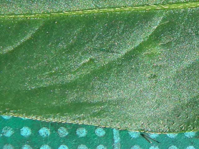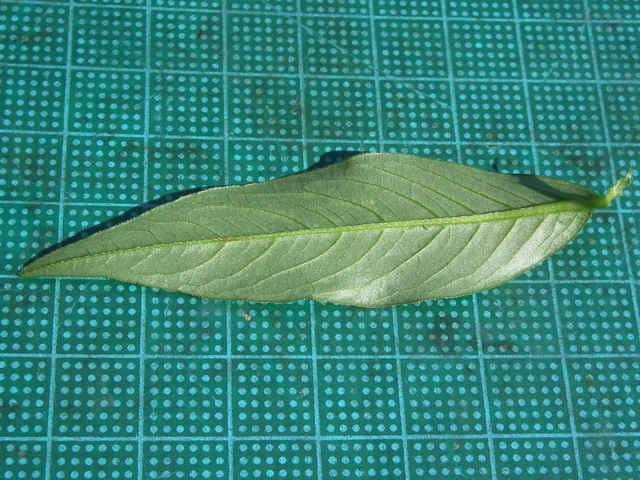 | ▼葉は長さ約7cm。 | ▼主脈と縁に毛がある。 | |
