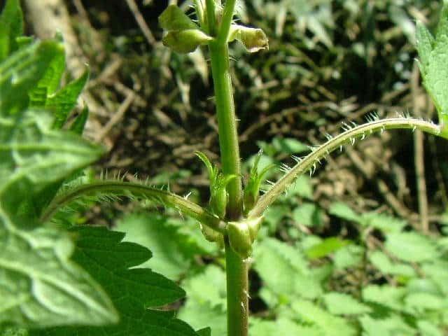 | ▼裏面に刺毛や短毛がある。 | ▼葉柄の刺毛。 | ▼茎に刺毛がある。 |