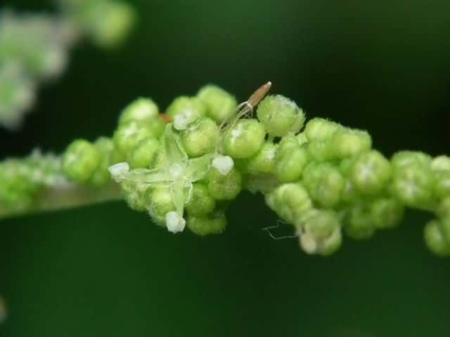 | ▼雄花序。 | ▼雄花。花被片4個、雄しべ4個 | |