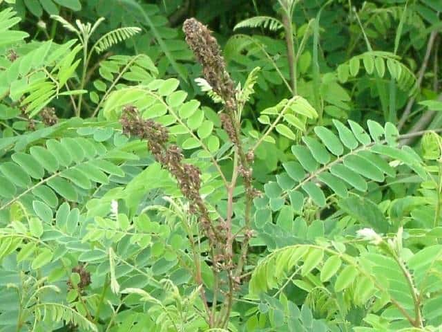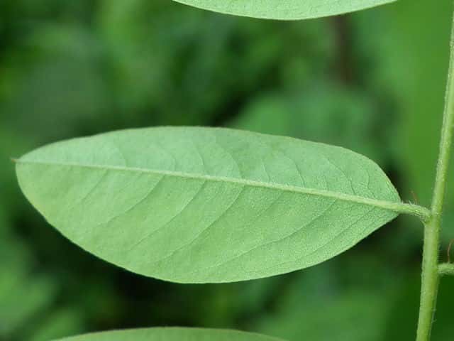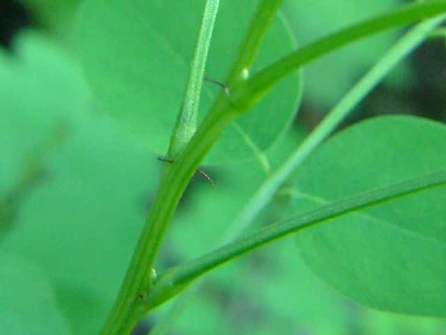 | ▼葉は長さ約21cm、小葉が11対ある。 | ▼小葉のつけ根に小托葉がある。 | |