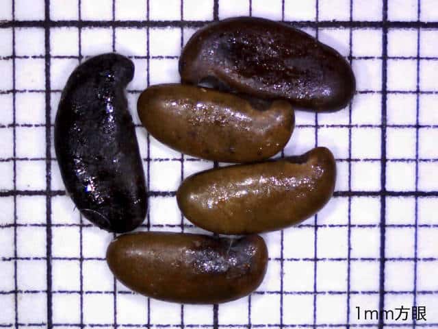 | ▼種子は長さ約5mm。 | ▼主芽と葉痕の間に副芽がある。 | |