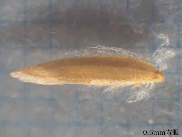 | ▼第1小花は長さ約2.7mm、護穎の竜骨に長毛がある。 | ▼護穎基部の縮れ毛と、竜骨の長毛。 | ▼葉舌は3mm以上ある。 |