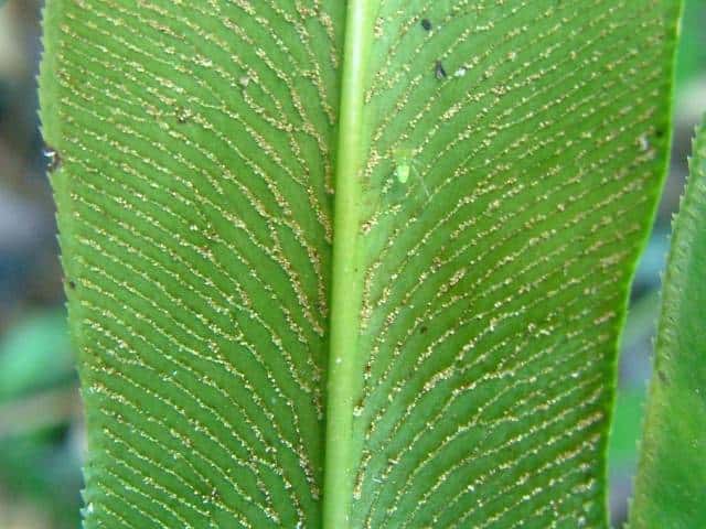| 常緑シダ植物 北海道〜九州の林下の湿った場所に生える。根茎は長くはい、80cm前後の葉をつける。葉身は1〜2回羽状で脈は網目を作る。羽片の先は次第に細くなり,全縁又は細鋸歯。ソーラスは脈上にでき包膜はない。 学名は、Coniogramme japonica ホウライシダ科イワガネゼンマイ属 よく似たイワガネゼンマイは葉脈が網目にならず、羽片の先が急にとがる。 |
