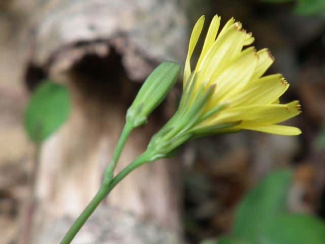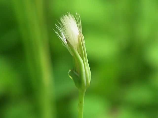 | ▼果実は上向きの短毛が密生する。 | ▼冠毛が開く前の果実。 | ▼花は舌状花のみからなる。 |