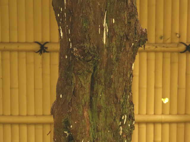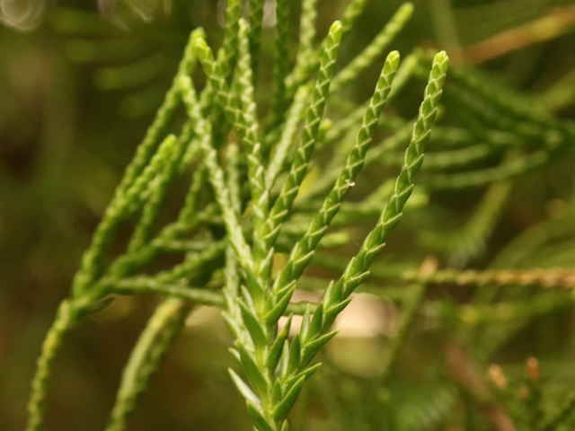 | 小低木〜高木 イブキの栽培品種で、生垣、庭木、公園樹に普通。葉は鱗状葉で長さ1〜2mm。原種のイブキに比べ、鮮やかな緑色で、枝葉がよく密生する。枝葉が炎のように旋回した樹形になるが、丸く刈り込まれたものや、盆栽風に仕立てられたものも多い。強剪定すると針状葉が出る。花期 4月(樹木の葉) [イブキ] 岩手県以南の太平洋側〜沖縄の海岸の岩上や砂地。常緑高木。大きいものは高さ15m、直径50cmになる。全体にねじれることが多い。樹皮は灰褐色。縦に裂けて薄くはがれる。葉は鱗片葉と針葉の2形がある。鱗片葉は長さ約1.5mmの小さな楕円形で、十字対生する。針葉も十字対生し、長さ5〜10mmと鱗片葉より長く、やや光沢のある明るい緑色で、白い気孔帯が2本ある。枝を刈り込んだあとなどから、3輪生し針葉がでることもある。雌雄別株。まれに同株のこともある。花期は4月頃。雄花、雌花ともに鱗片葉のついて小枝の先端につく。雄花は長さ3〜4mmの楕円形。雌花の鱗片は6個、厚くて黄色から紫緑色に変化する。球果は直径6〜7mmの球形。開花した翌年の10月頃に熟す。肉質で熟すと黒紫色になり、白いロウをかぶる。果鱗は完全に合着し、裂開しない。種子は長さ3〜5mmの卵球形、形は変異が多い。褐色で表面には光沢がある。ふつう1個の球果に、2〜4個の種子が入っている。(樹に咲く花) 学名は、Juniperus chinensis 'Kaizuka' ヒノキ科ビャクシン属 |