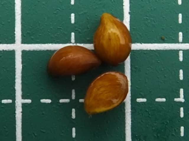 | ▼若い種子は長さ約3.5mm。 | ▼果柄にはいぼ状の皮目がある。 | |
