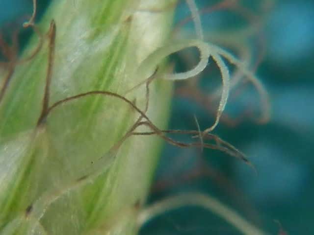 | ▼小穂は長さ約15mm。 | ▼柱頭は3岐する。 | ▼鱗片は長さ約5.5mm、先は短い芒となる。 |
